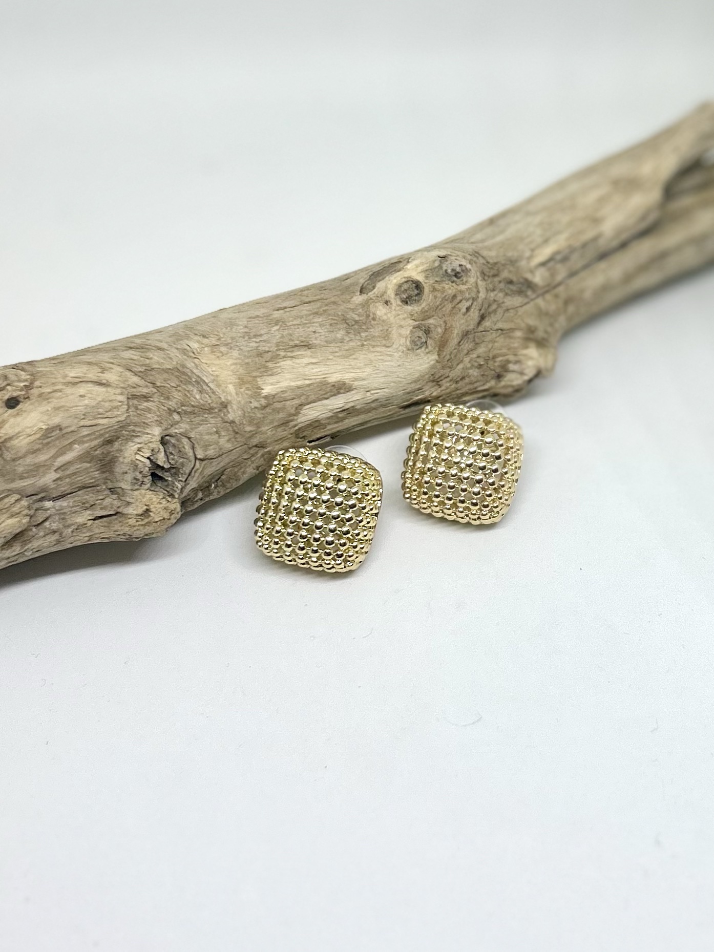 Σκουλαρίκια τρυπητά από ατσάλι Εκρού πέτρα στο κέντρο