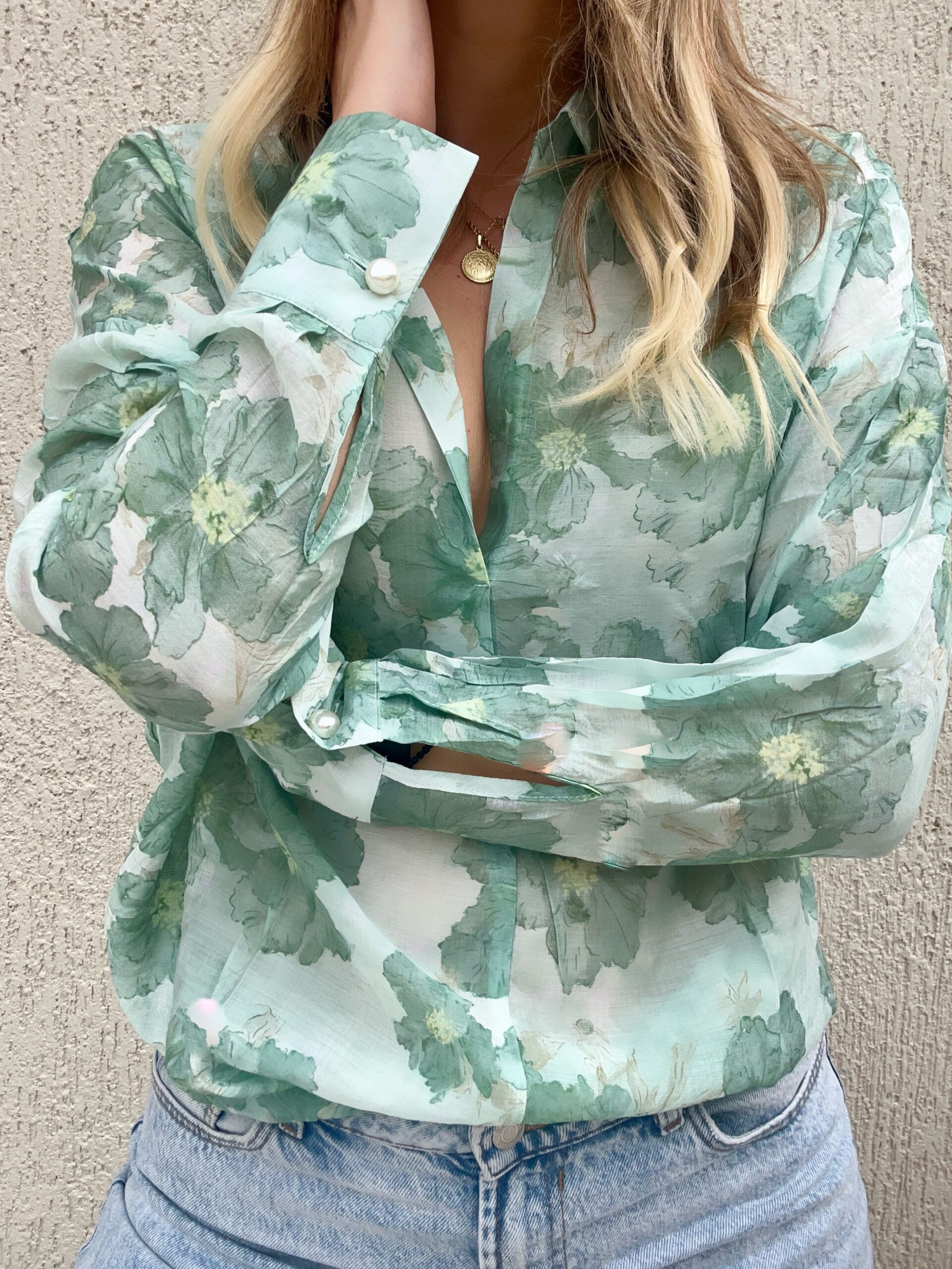 Μπλούζα με μοτίβο και κουμπιά Φαρδύ μανίκι με μανσέτα One size (καλύπτει S έως L)