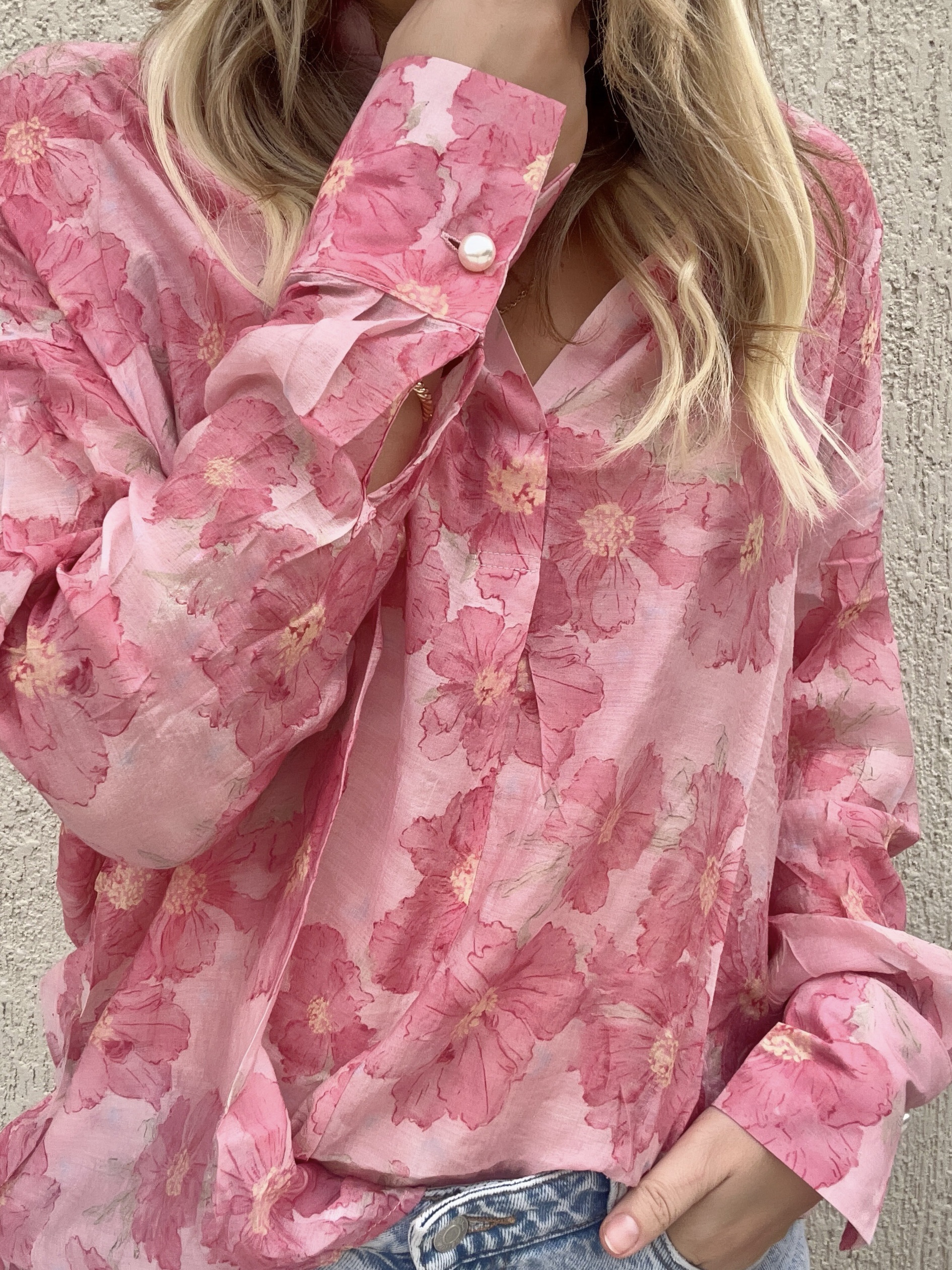 Μπλούζα με μοτίβο και κουμπιά Φαρδύ μανίκι με μανσέτα One size (καλύπτει S έως L)
