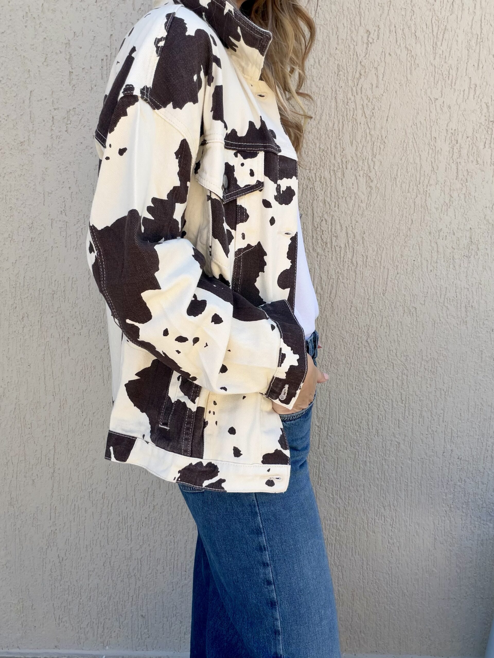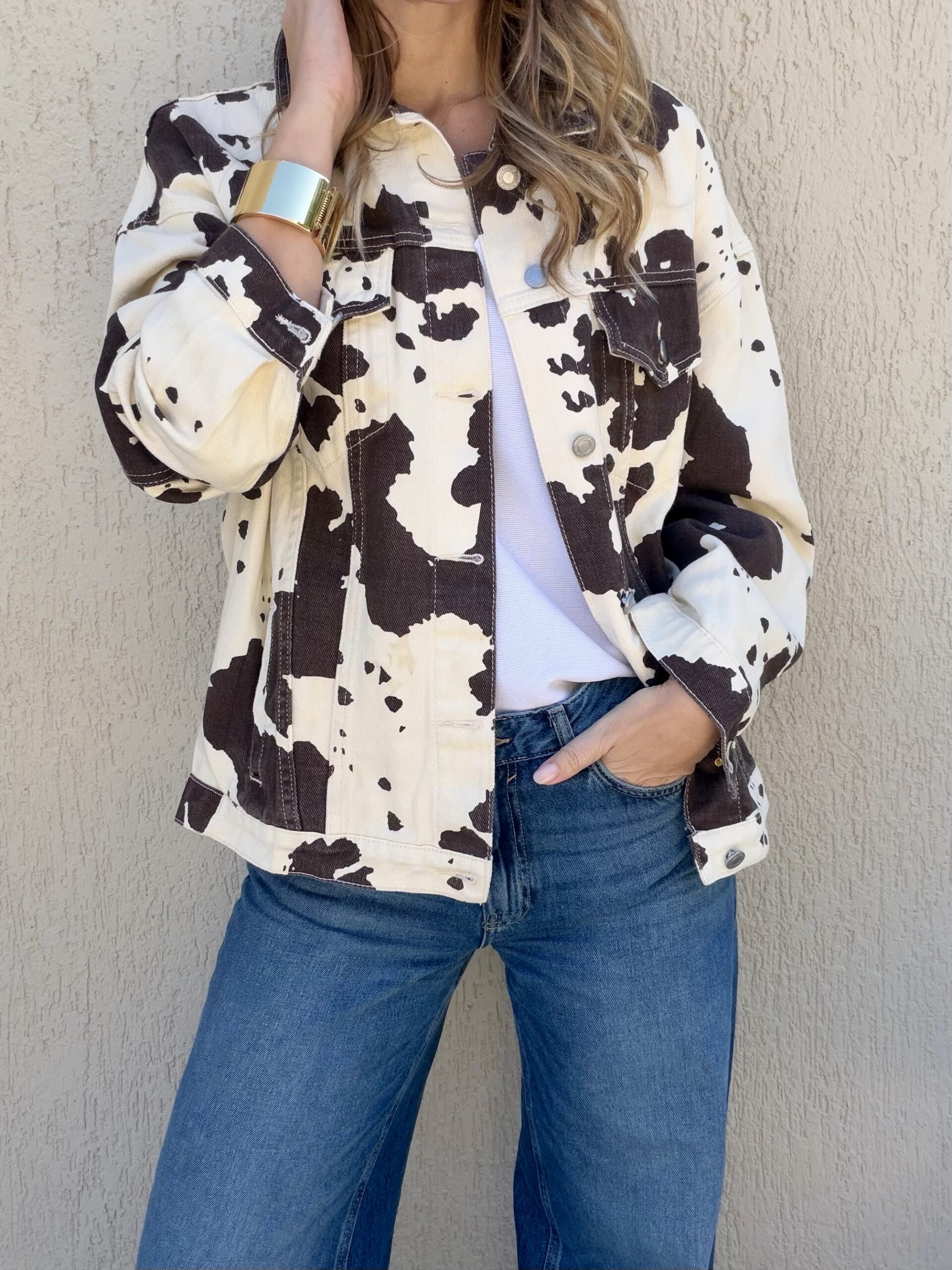 Statement denim jacket με cow print που δίνει fashion-forward χαρακτήρα σε κάθε outfit. Η χαλαρή γραμμή του και το κλασικό jean σχέδιο με γιακά και μεταλλικά κουμπιά το κάνουν ιδανικό για effortless καθημερινές εμφανίσεις, ενώ το ιδιαίτερο pattern αναβαθμίζει ακόμη και τους πιο basic συνδυασμούς.