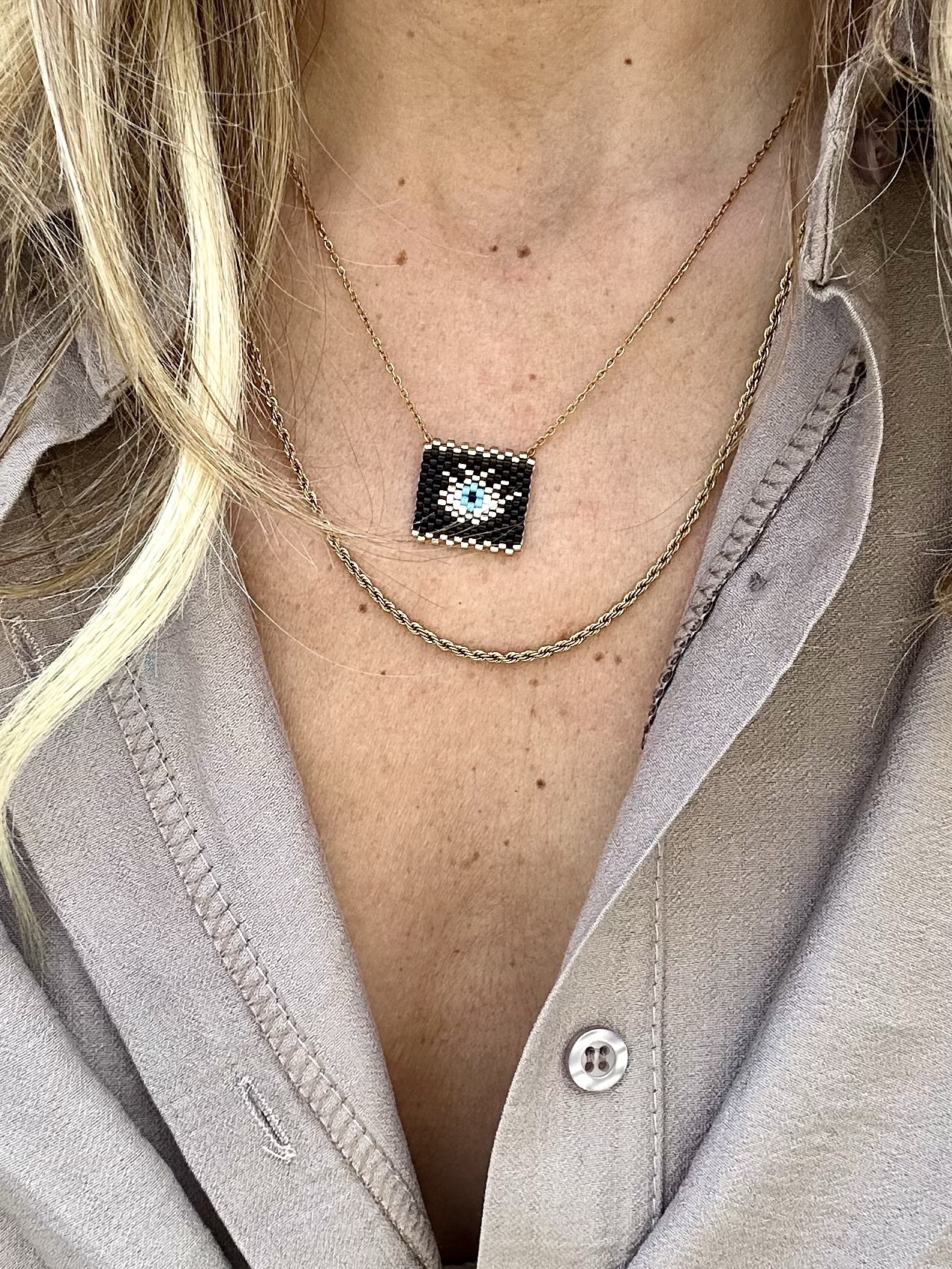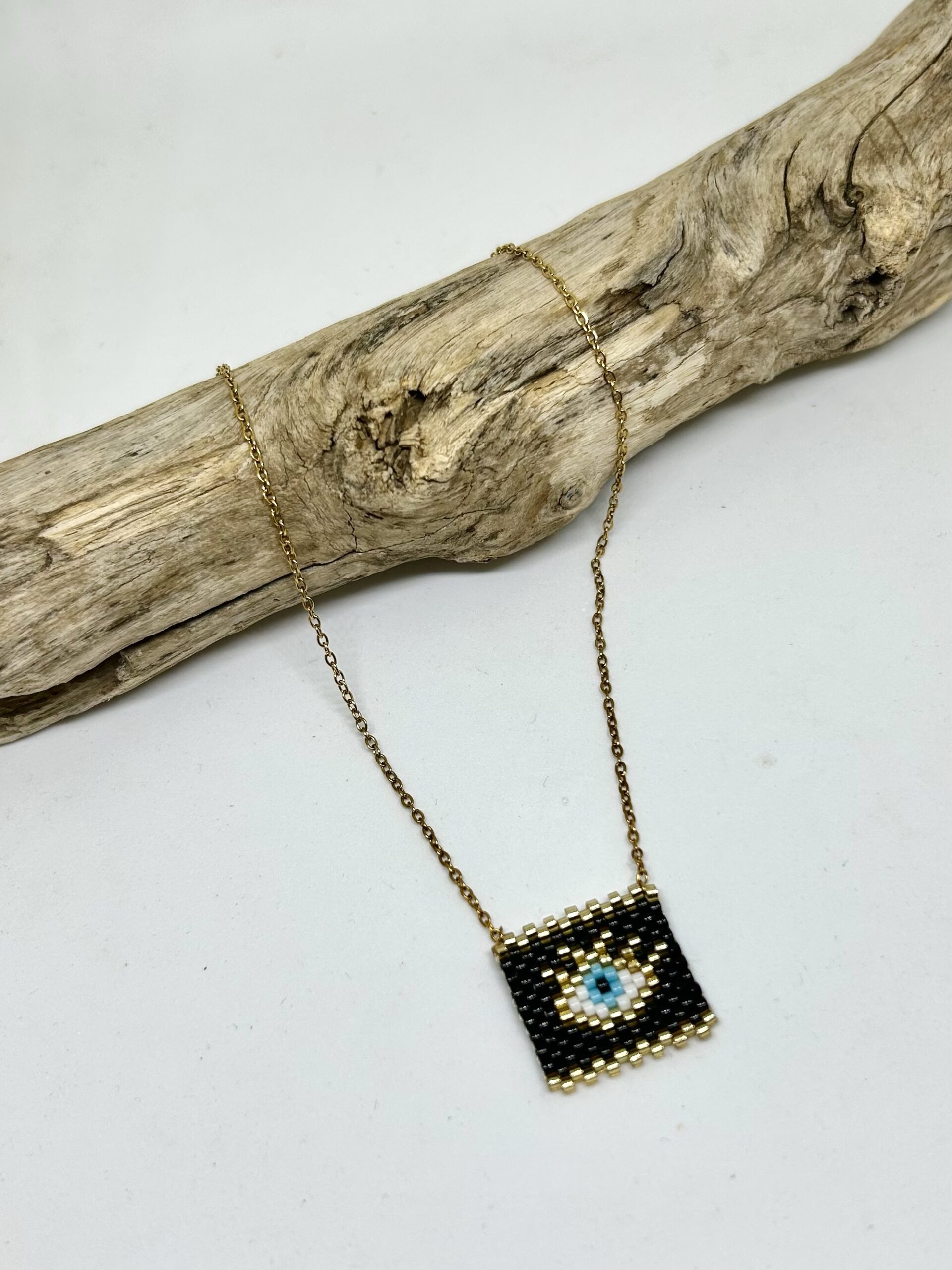 Μάτι με πλεκτή λεπτή χάντρα. Υλικό αλυσίδας: ατσάλι
