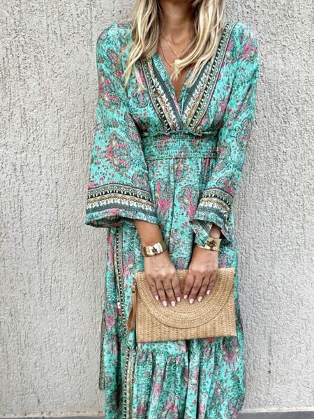 Μακρύ φόρεμα Boho style  Άνοιγμα στην πλάτη One size Σύνθεση: 70% μετάξι και 30% βισκόζη