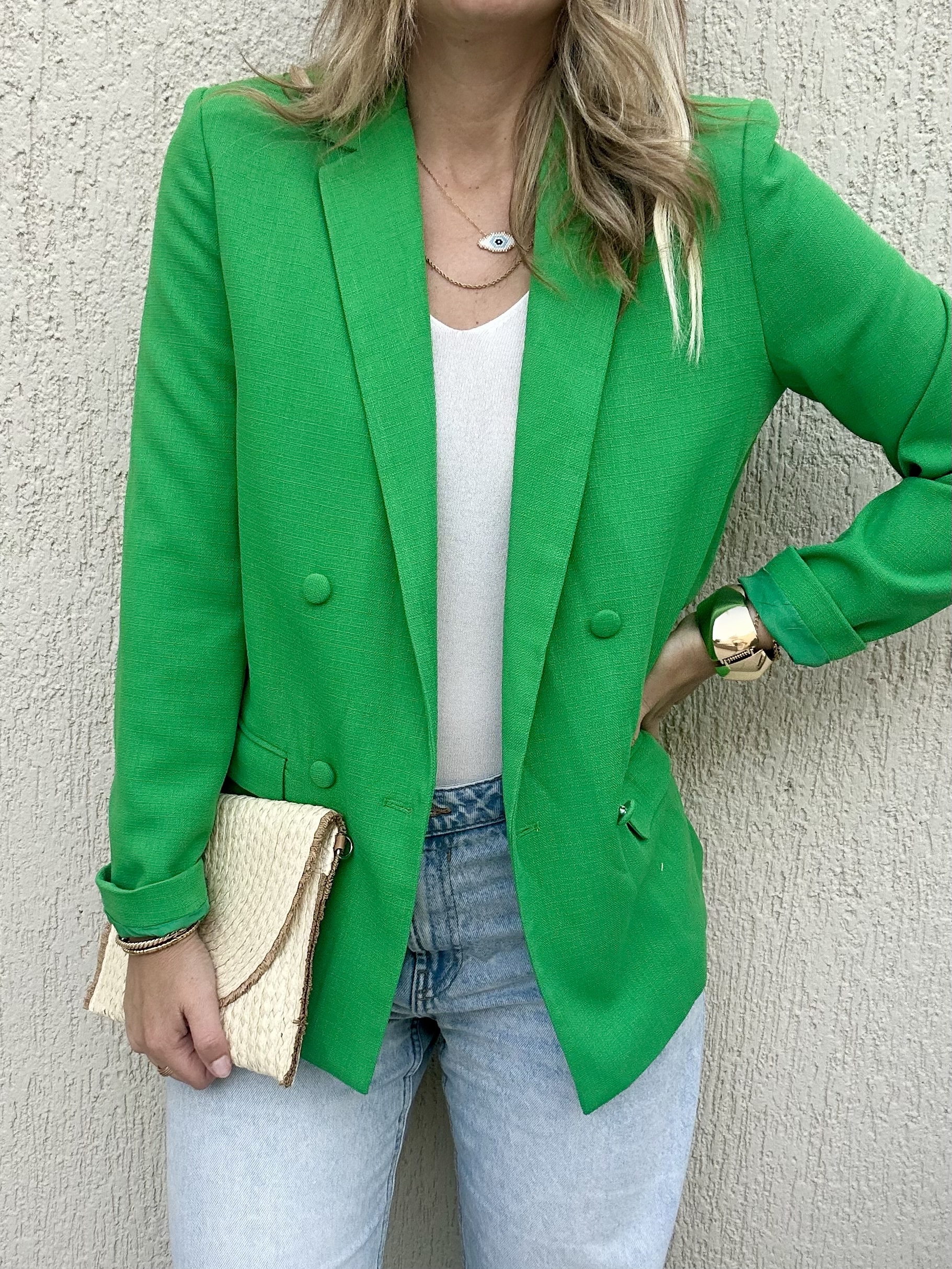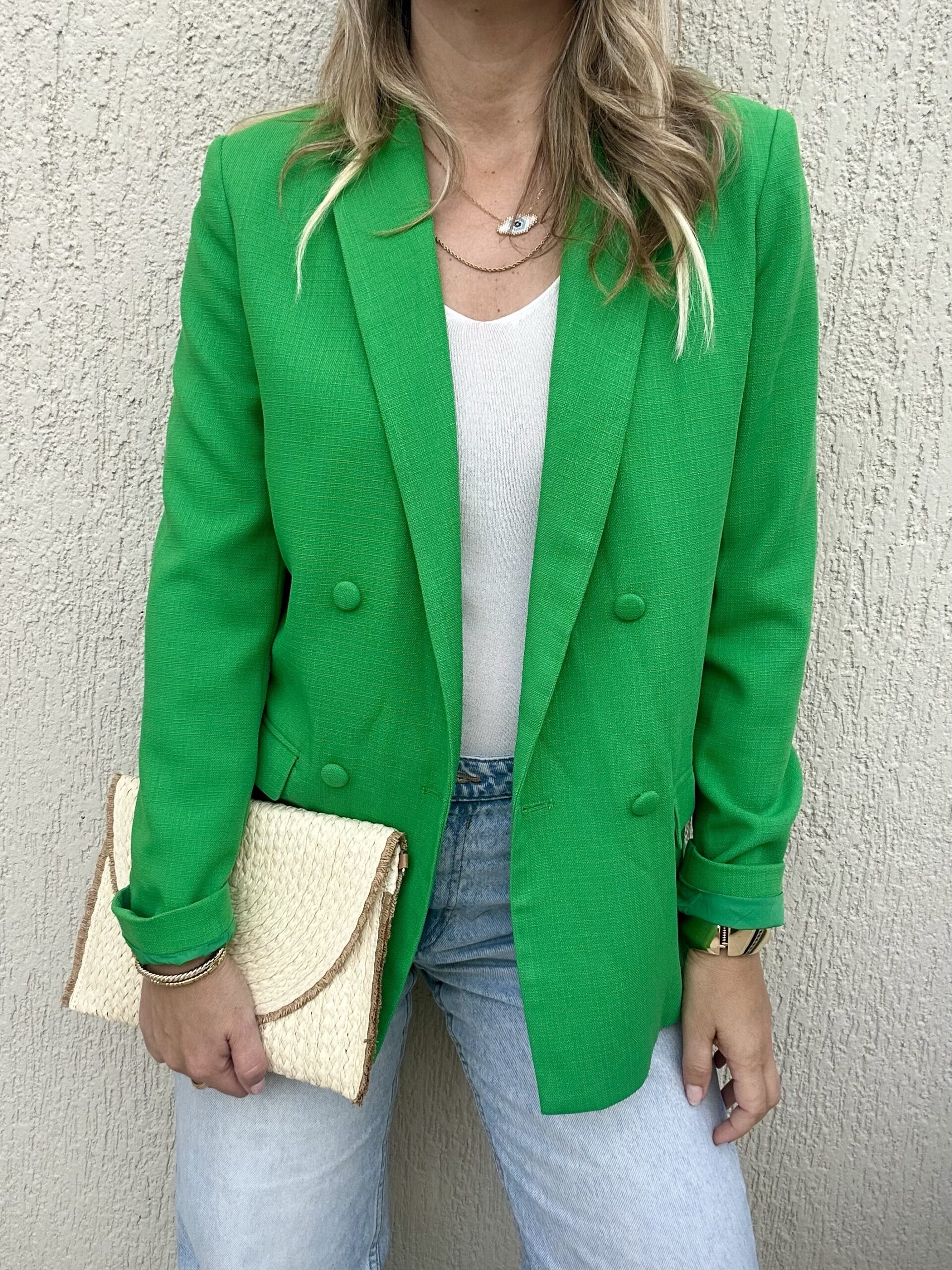 Το Ivy Blazer είναι η απόλυτη προσθήκη για ένα bold, chic και μοντέρνο look. Το έντονο πράσινο χρώμα του κλέβει τις εντυπώσεις, ενώ το διαχρονικό κόψιμο με διπλό κούμπωμα το καθιστά ιδανικό για office looks αλλά και βραδινές εμφανίσεις.