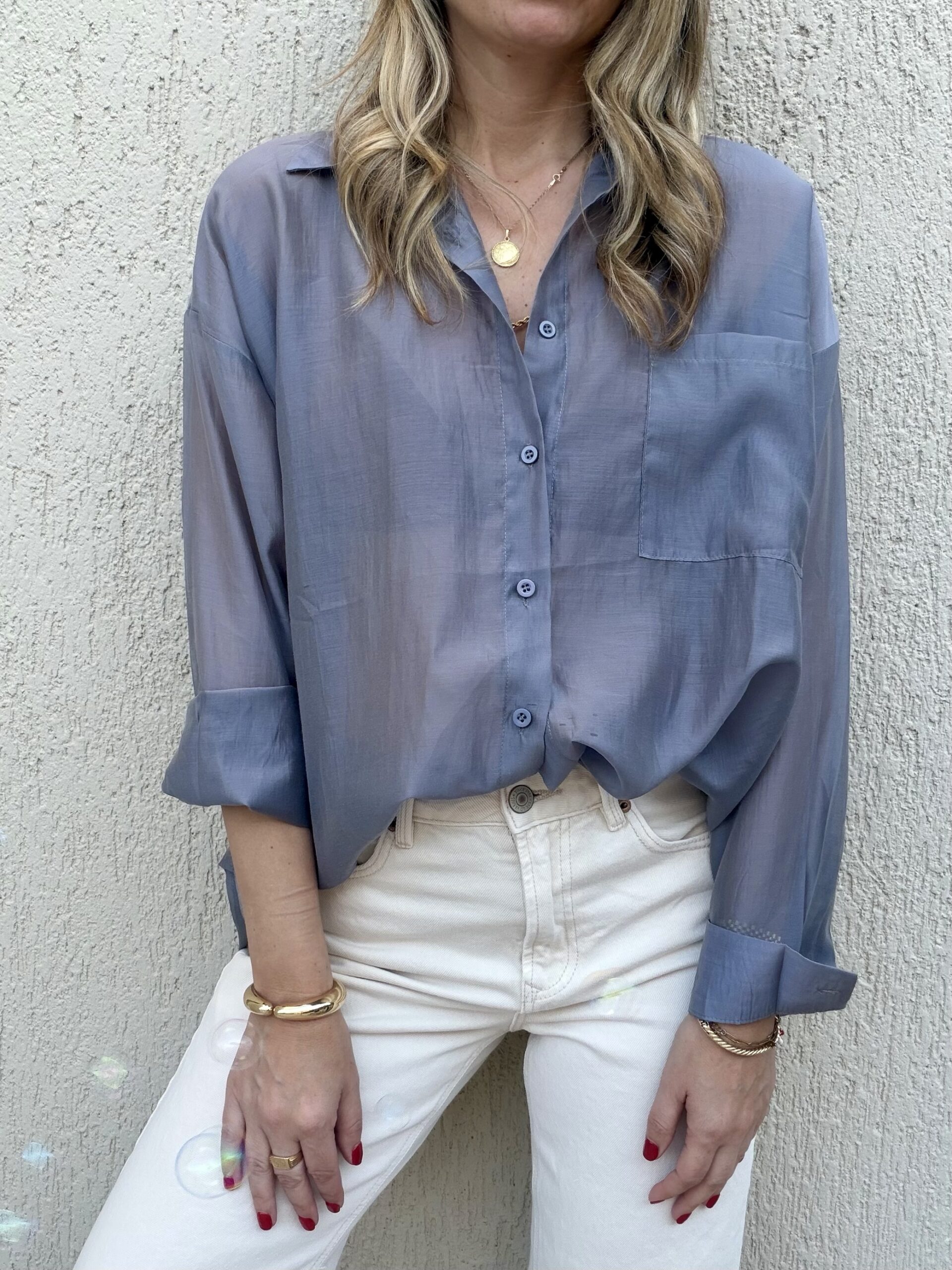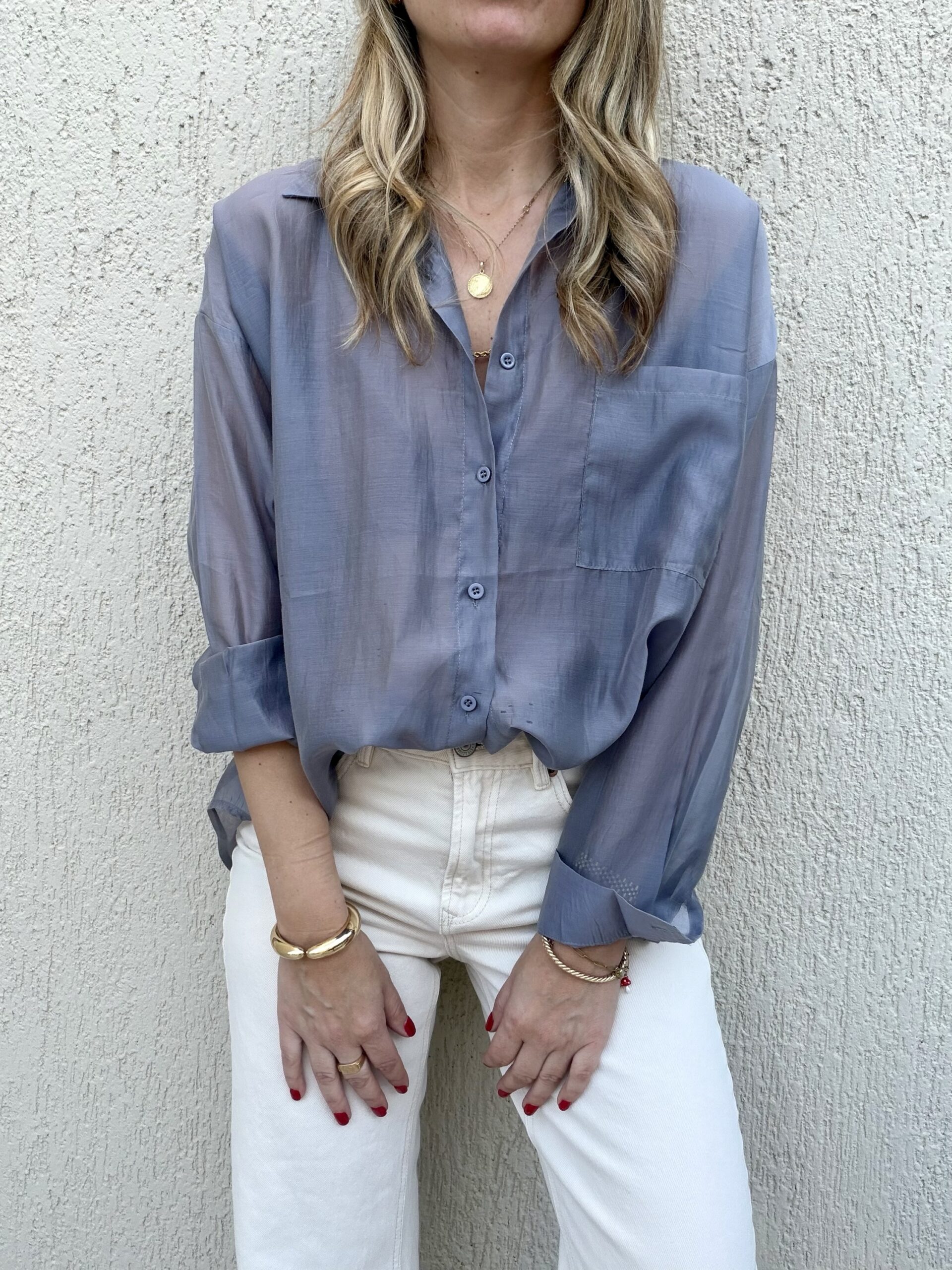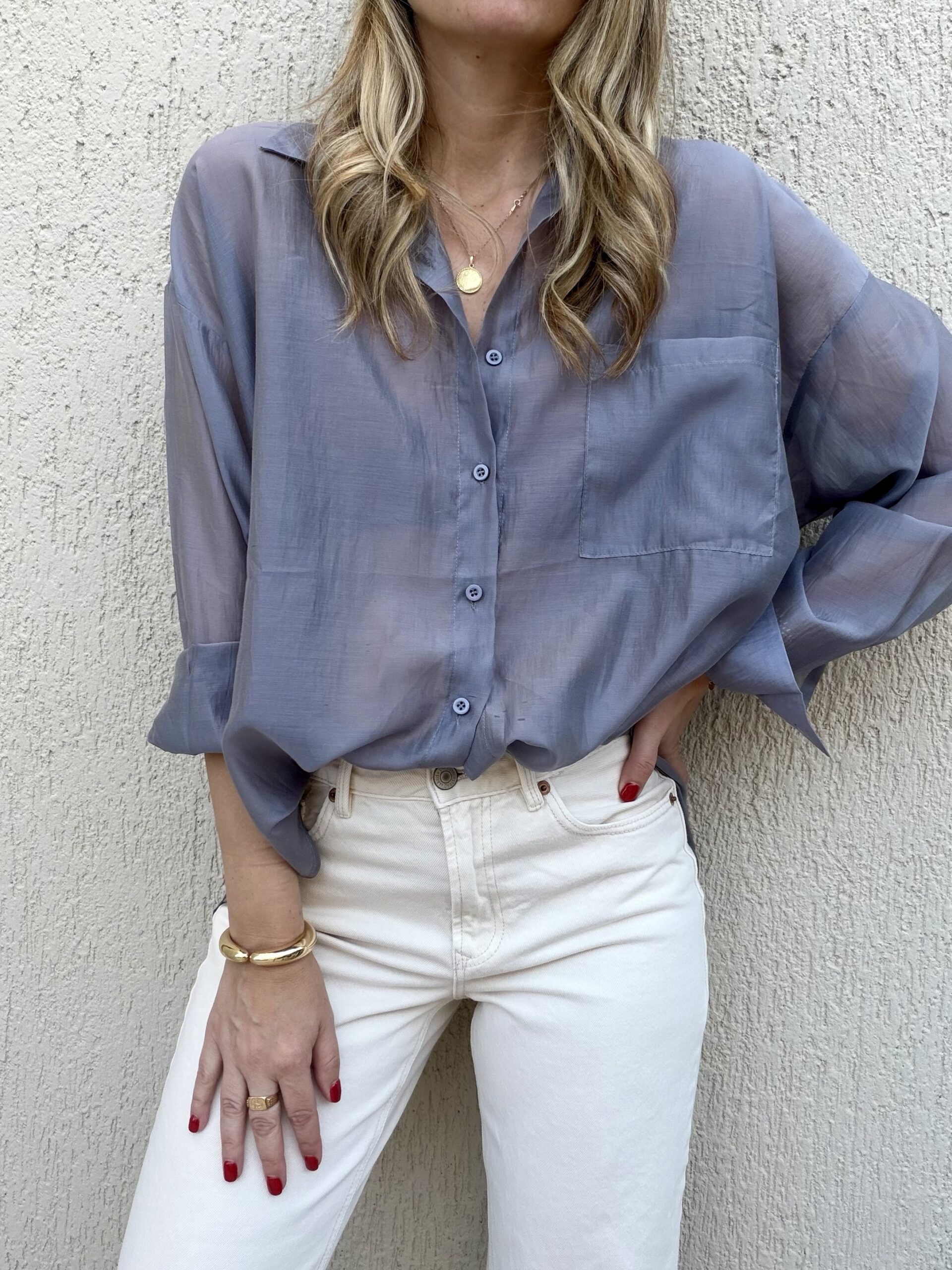 Απαλό πουκάμισο σε γκρι-μπλε απόχρωση, ιδανικό για minimal και κομψά καθημερινά looks.