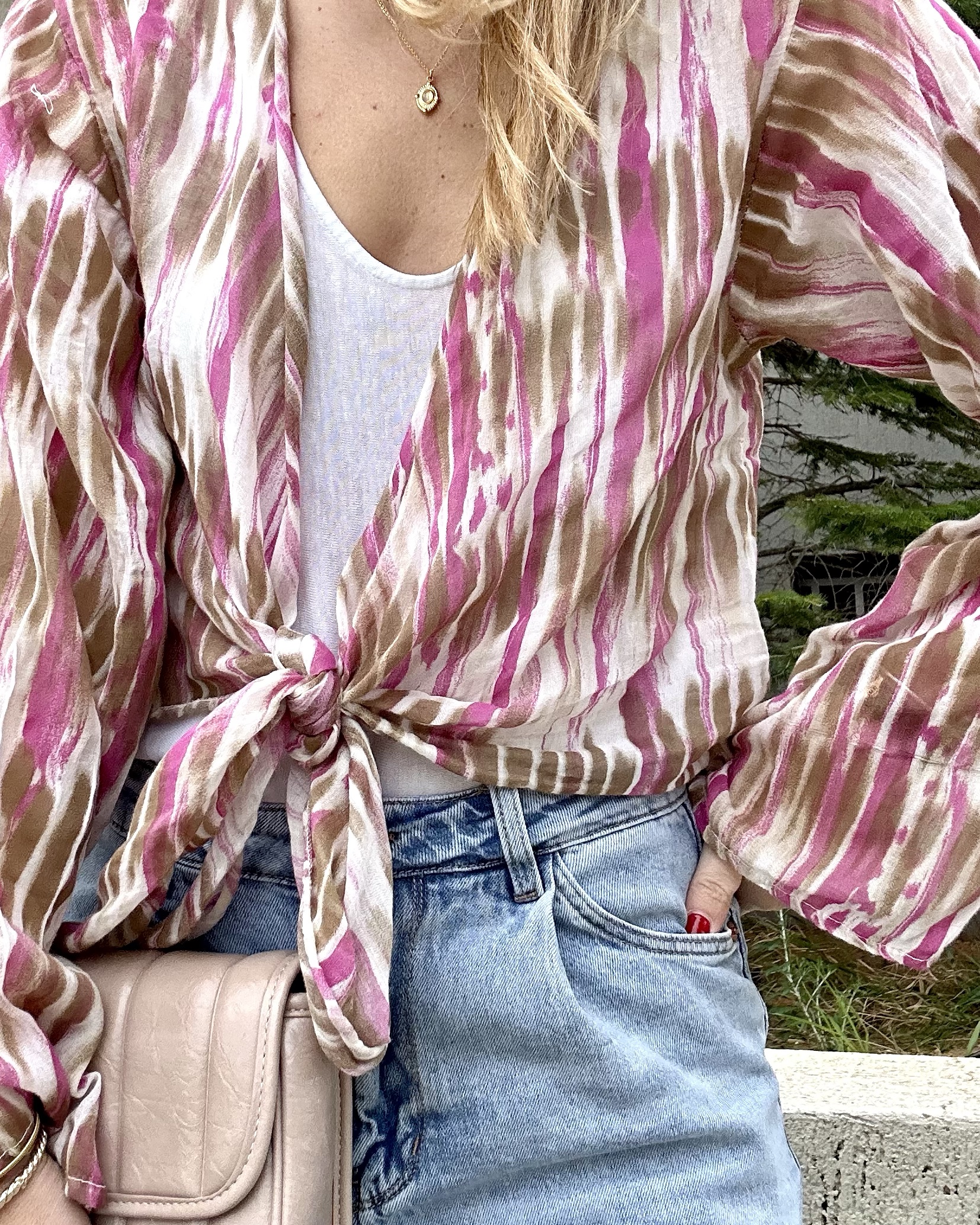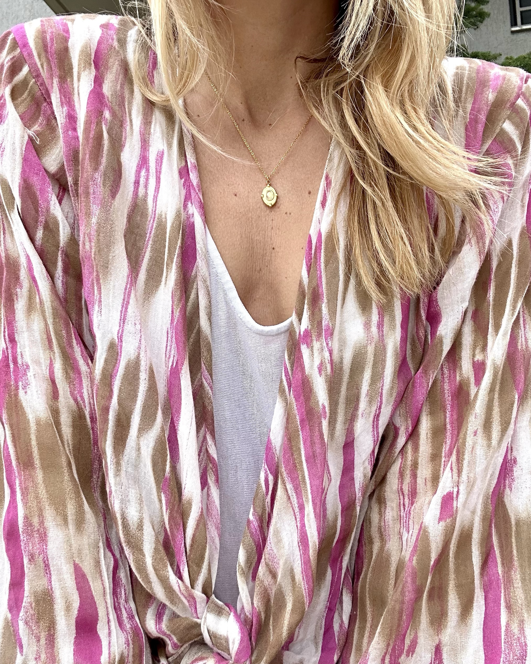 Μακρύ πουκάμισο με prints. • Μακρύ μανίκι με μανσέτα. • Κλείσιμο μπροστά με κουμπιά. Γραβάτα ενωμένη στο γιακά από το ίδιο ύφασμα • Oversized fit. • One size. Καλύπτει small έως extra large