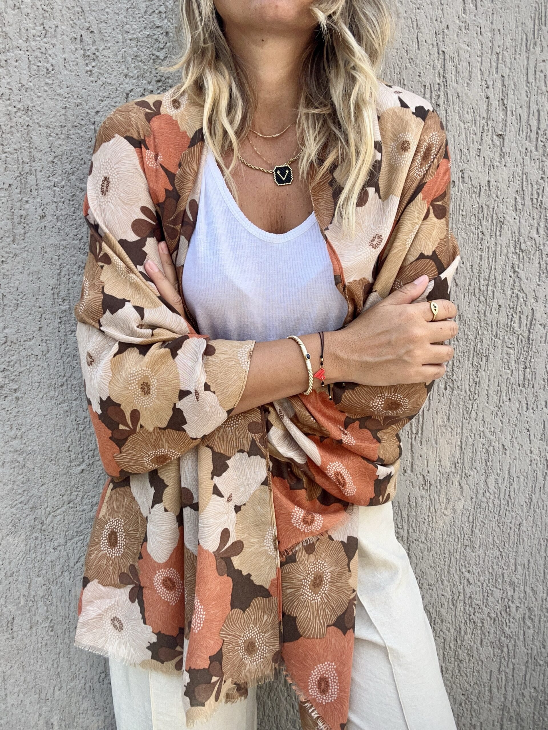 • Πασμίνα με prints λουλουδιών