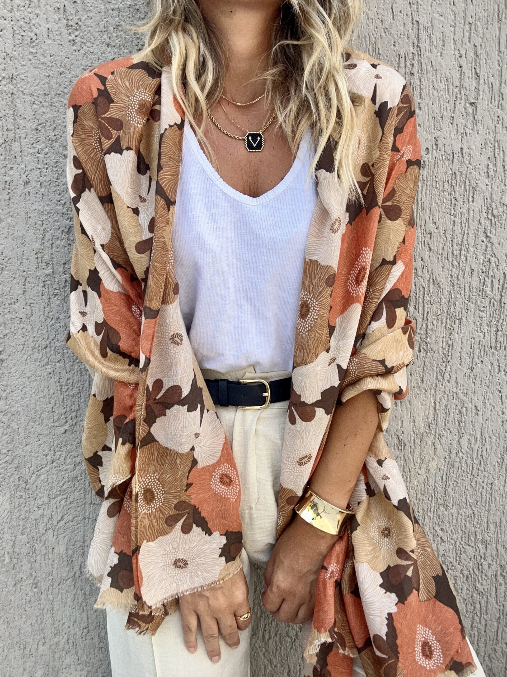 Pashmina Flower Beige