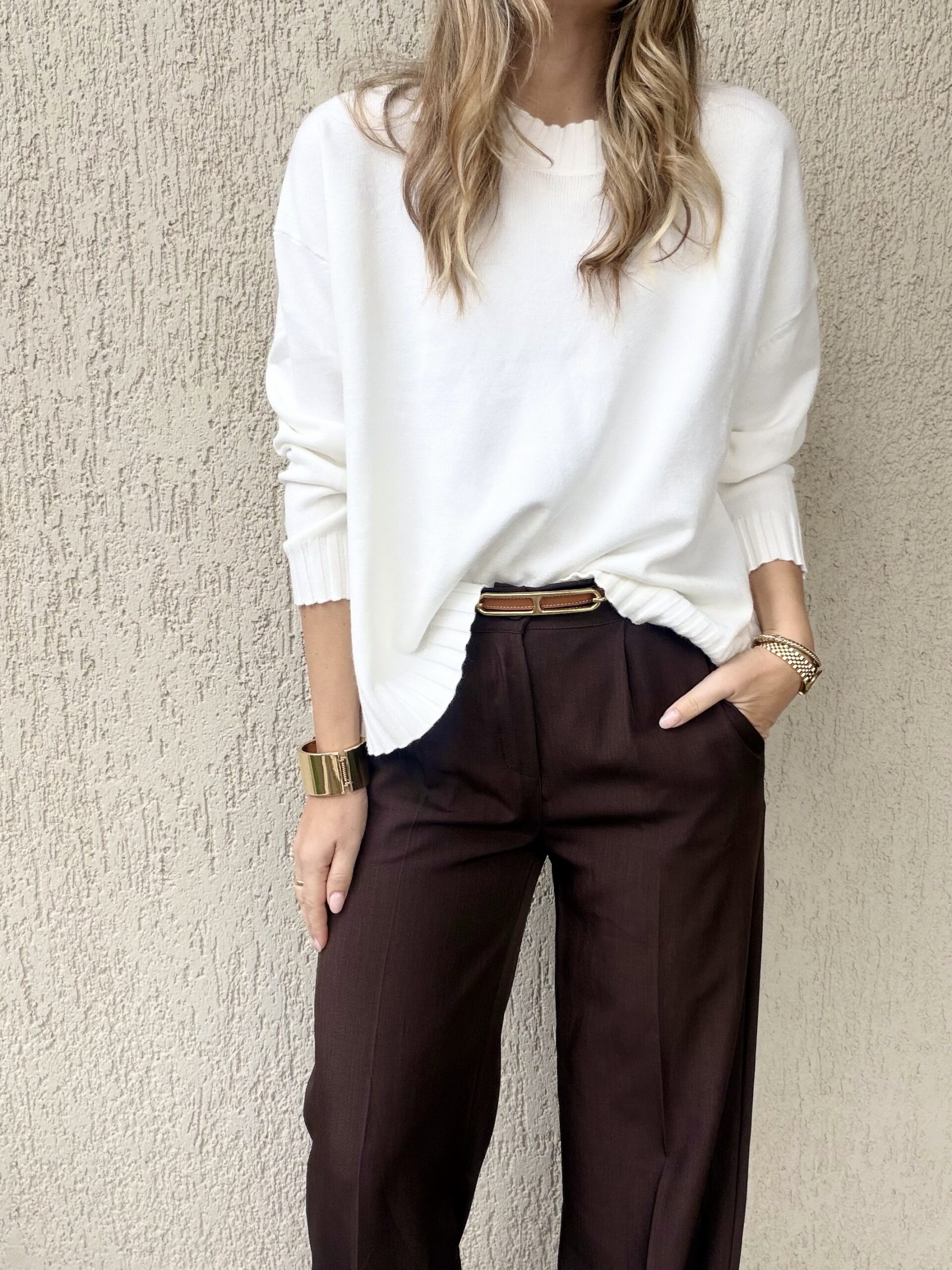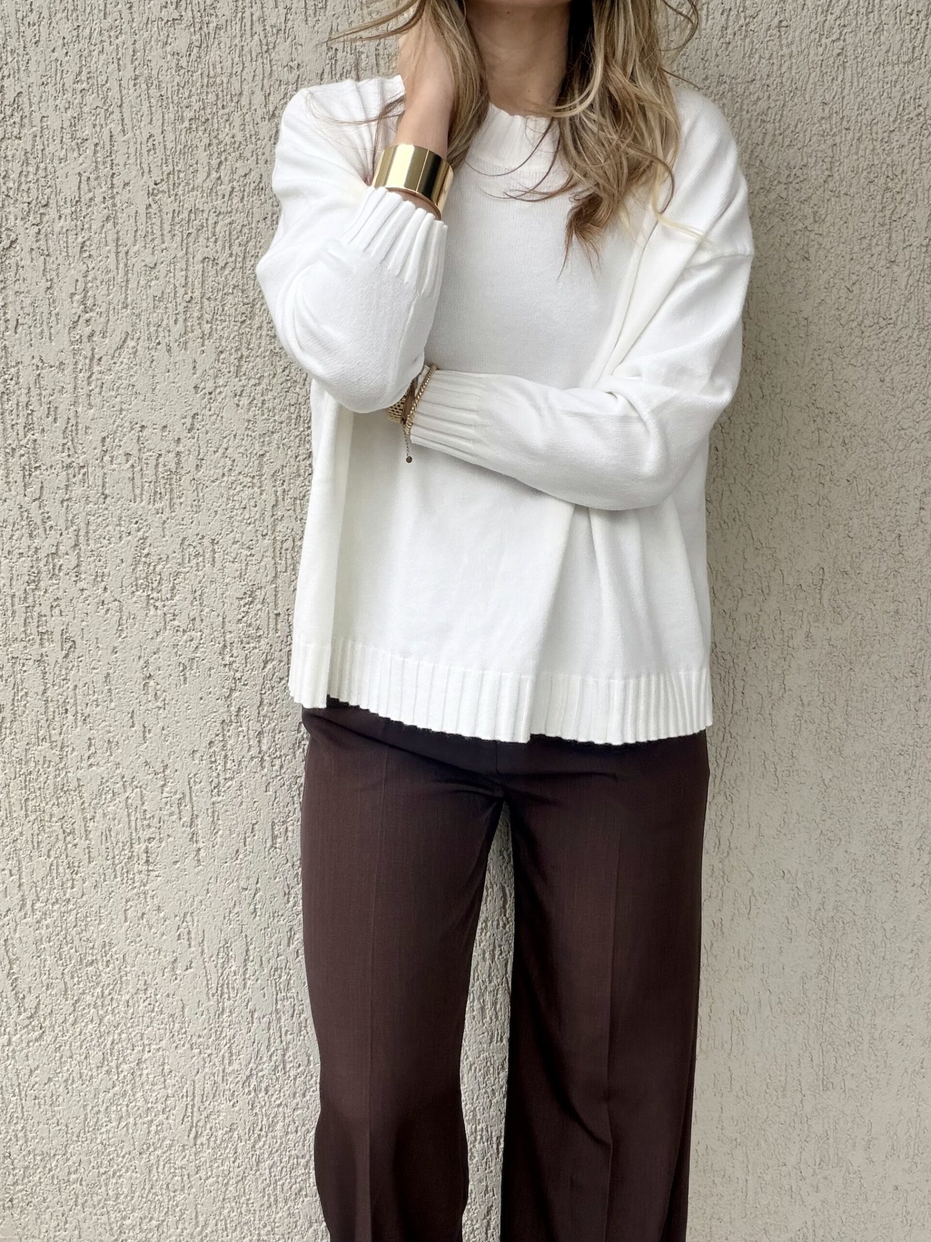 Κλασική πλεκτή μπλούζα με minimal γραμμή και εξαιρετικά απαλή υφή που χαρίζει άνεση και κομψότητα σε κάθε εμφάνιση. Η στρογγυλή λαιμόκοψη και τα rib τελειώματα στα μανίκια και στο κάτω μέρος δημιουργούν ένα διαχρονικό σχέδιο που φοριέται από το πρωί έως το βράδυ.