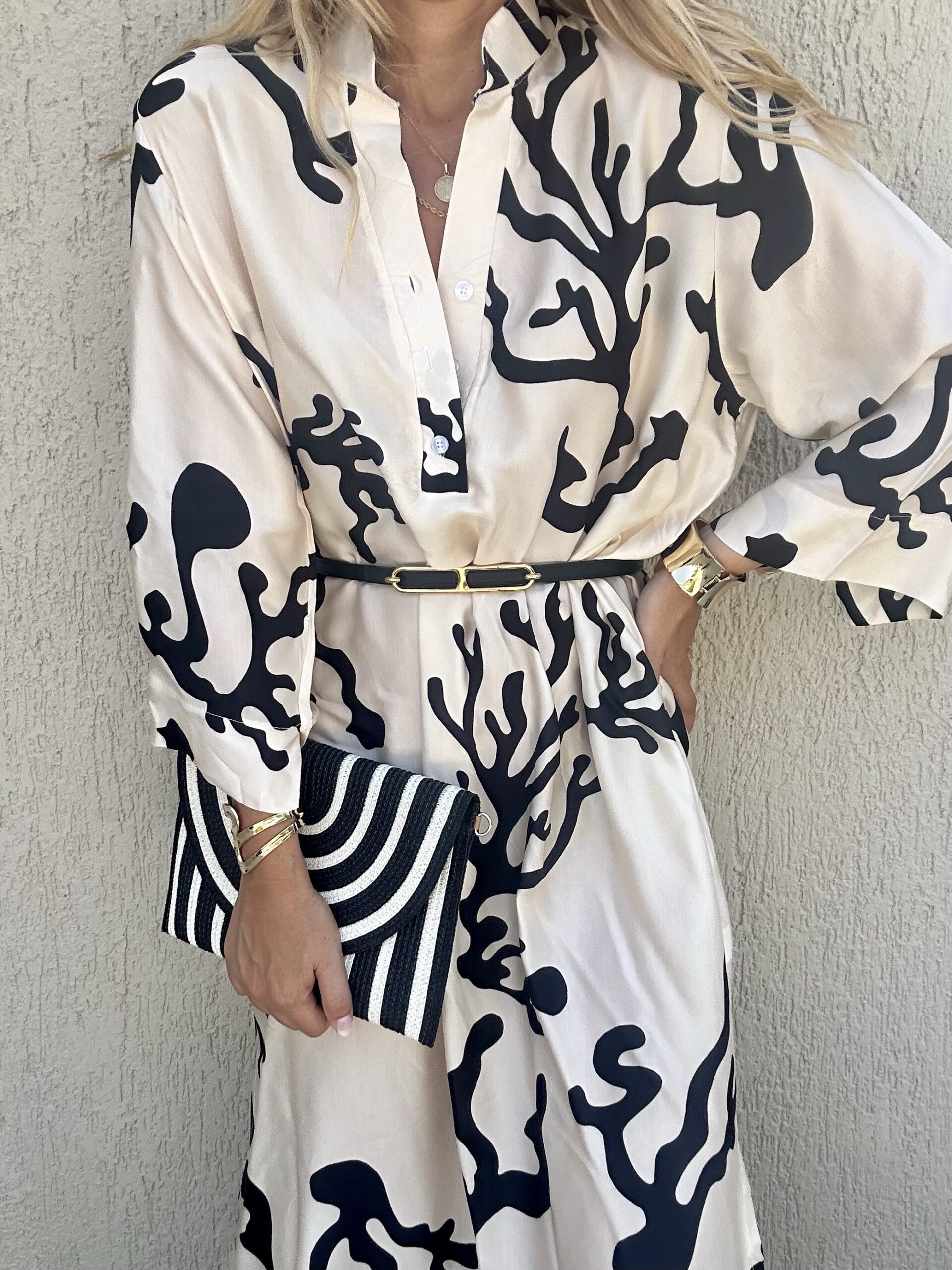 Φόρεμα μακρύ με γιακά Ζώνη από το ίδιο ύφασμα One size. Καλύπτει small έως large