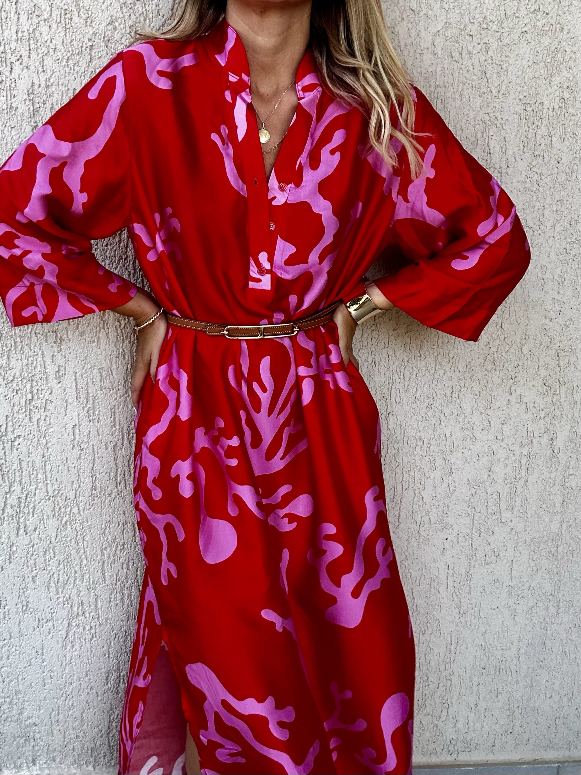 Μακρύ φόρεμα 100% βισκόζη Καλύπτει small έως large Η ζώνη δεν συμπεριλαμβάνεται