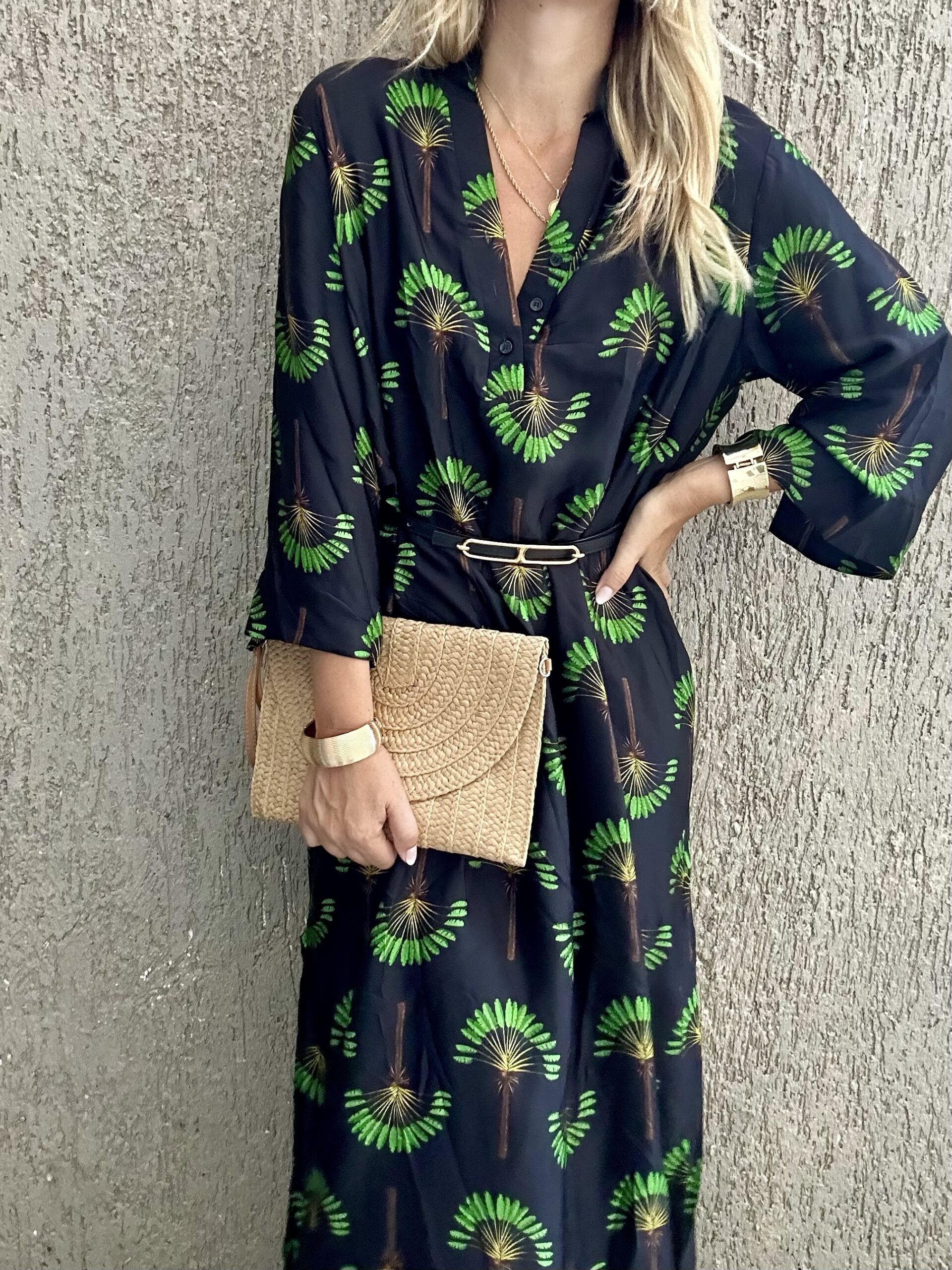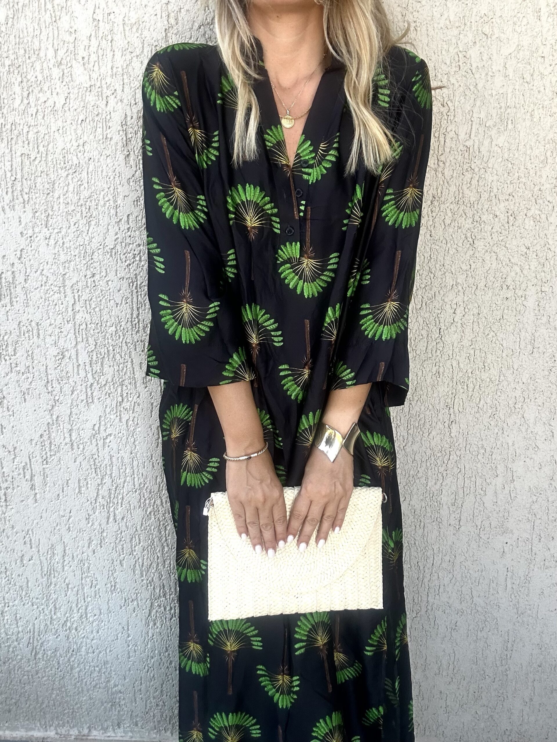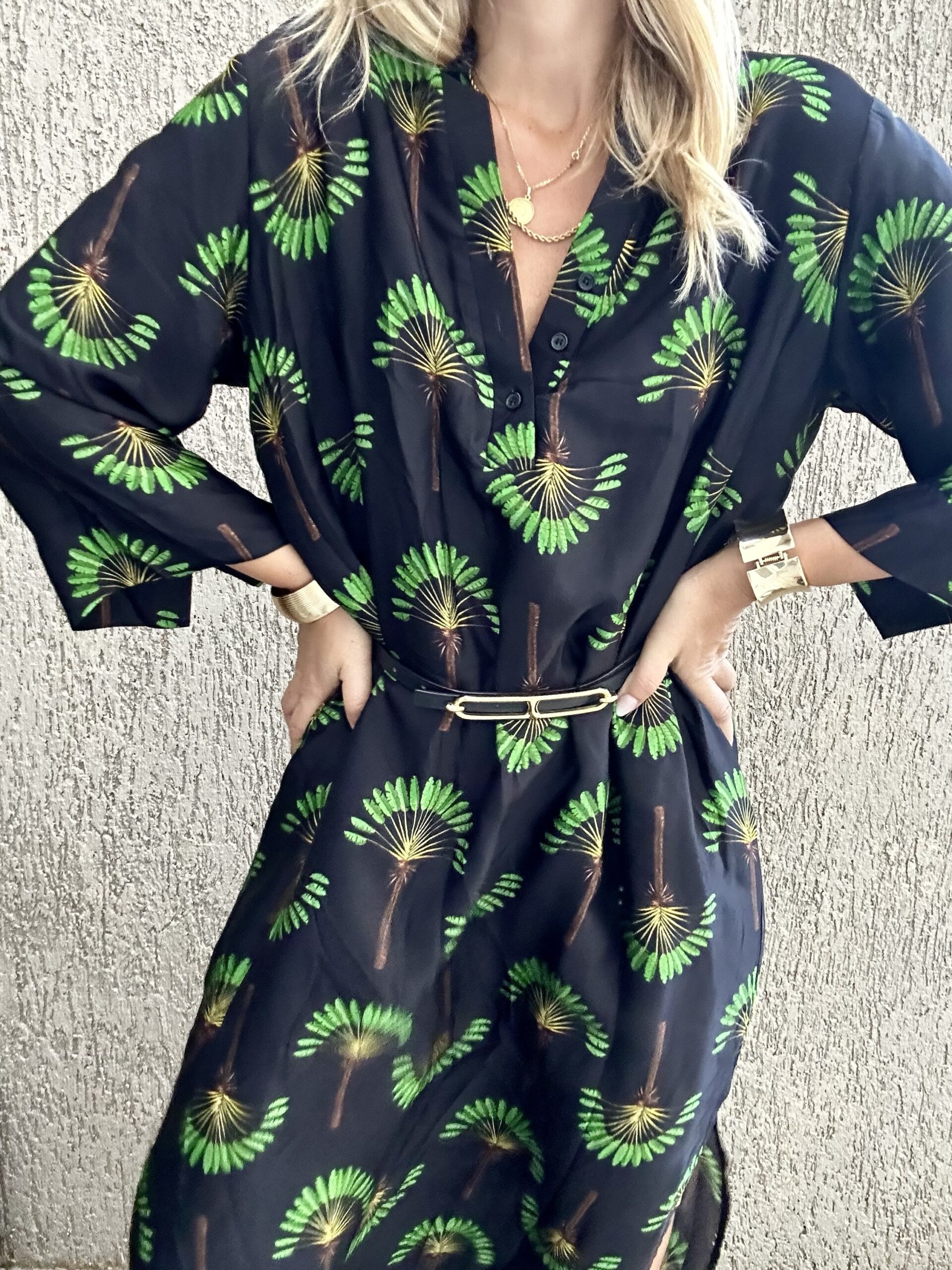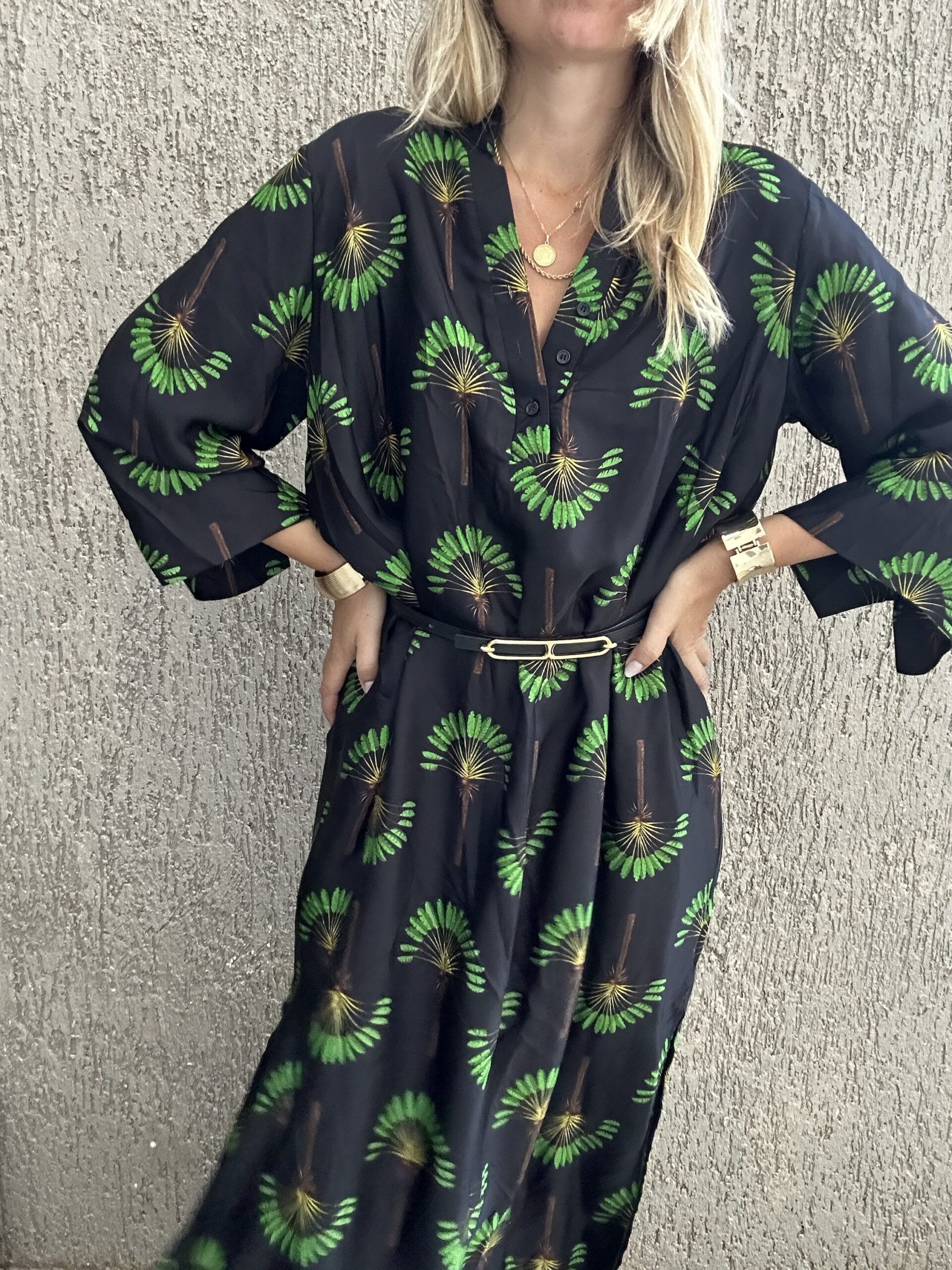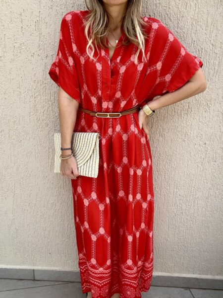 Μακρύ φόρεμα – καφτάνι με prints 100 % βισκόζη One size καλύπτει small έως xlarge Η ζώνη δεν συμπεριλαμβάνεται
