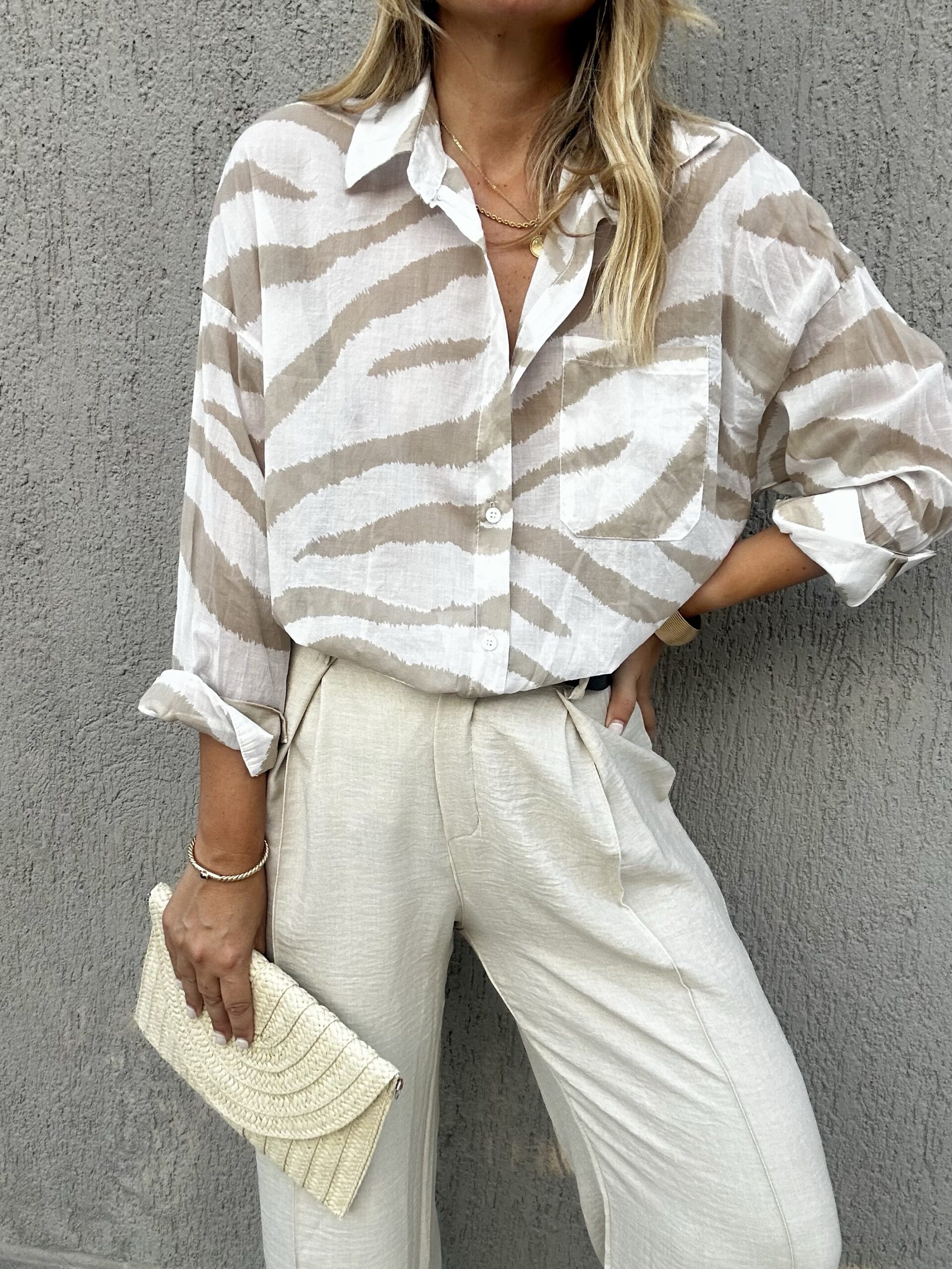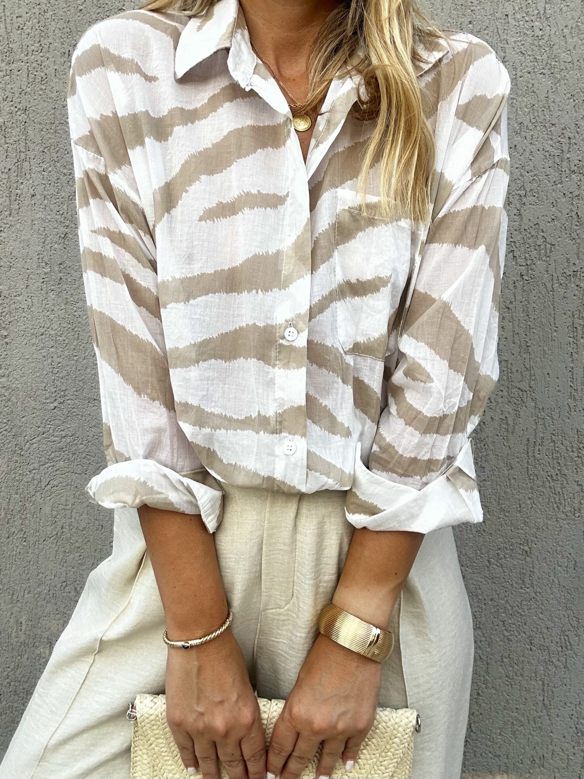 • Μακρύ πουκάμισο με prints. • Μακρύ μανίκι με μανσέτα. • Κλείσιμο μπροστά με κουμπιά. • Oversized fit. • One size Καλύπτει small έως large